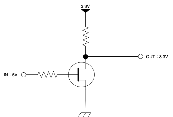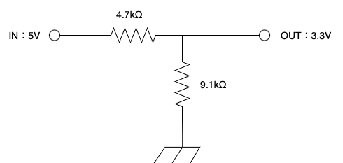 5Vの信号を3.3Vに変換する回路は、たとえば下図のようになります。